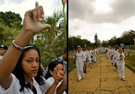 Las Damas de Blanco reclaman desde hace siete años la liberación de sus familiares, 75 opositores arrestados y condenados en 2003 a penas de hasta 28 años de cárcel.