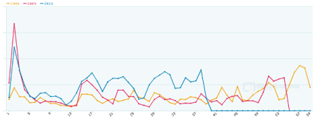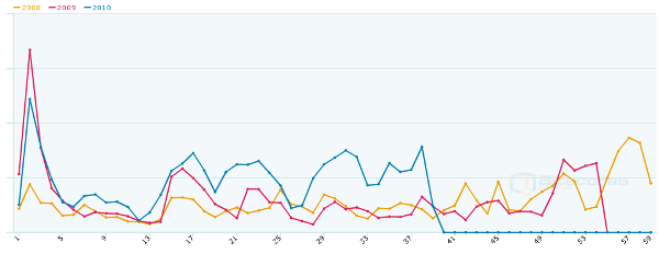 “Gráfica que muestra una comparativa con la evolución del número de votos por día. Al ser una foto del momento actual, los datos correspondientes a 2010 -gráfica azul-, se “cortan” justo en el día de hoy.