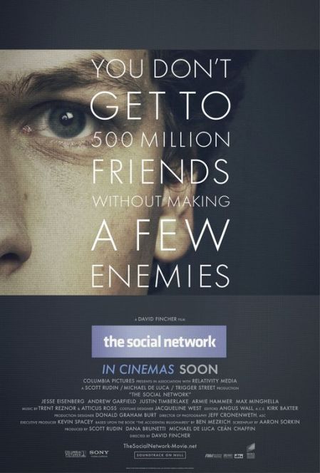 El filme que, a mi juicio, ganará el Óscar a mejor película, centra la crónica de estos tiempos, en el sueño americano de un astuto estudiante de Harvard, cuya genialidad y confianza en sí mismo, dentro de la computación, lo llevan a crear la red social” que lo catapulta a la fama, seis años después, ya convertido en doble multimillonario, por haber superado una cifra de 500 millones de amigos, por todo el mundo, junto al hecho de erigirse, como el billonario más joven de la historia estadounidense. Este rol fue entregado, por el director Finch, a Jesse Eisenberg (igualmente nominado para un Óscar), quien encarna al polémico Mark Zuckerberg, el super popular Hombre del Año, por haber creado Facebook, y a través de ella, una nueva era, con la globalización de las comunicaciones, que ha revolucionado el universo, desde un computador, en un pequeño cuarto universitario, con escasos ayudantes y muchas ideas, pero sobre todo, fue posible, gracias al afán desarrollista y la creatividad de un genio juvenil, a mitad de camino entre la blogacción y la programación, con una convicción, que reza como emblema de la grandiosa cinta, en donde prima la brillantez y lucidez comunicativa de su realizador David Finch, cuyo guión adaptado estuvo a cargo de Aaron Sorkin, a partir del best seller The Accidental Billionaires, escrito por Ben Mezrich. El slogan o moraleja de esta propuesta fílmica no da lugar a la confusión de su mensaje y proyección artística: «No se hacen 500 millones de amigos, sin hacer unos cuantos enemigos.»