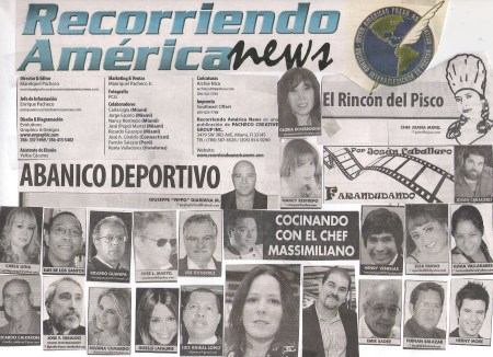 El periódico Recorriendo América News cumplió su primer aniversario y continúa editándose, en Miami, con calidad, competitividad y profesionalismo de altura. Un sencillo reconocimiento a este medio periodístico, por encauzar la obra de miembros inscriptos a la nueva red de COMUNICASIBER, como a los que ya se han inscripto en la red Creabloggers, con el objetivo de promover su obra periodística online y compartir o debatir la de otros comunicadores del orbe.