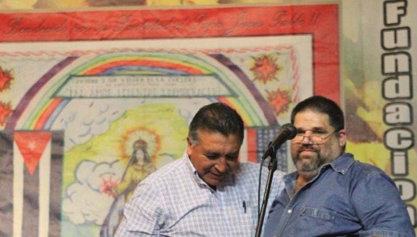 La Peña tuvo lugar el viernes 29 de abril, en la Galería Art Estudio de Iván Galindo y Mario Chuy, sita en “La Pequeña Habana”, de Miami, dentro del marco de los Viernes Culturales de la Calle 8, cuyo escenario fue engalanado, con el “Mándala de la Comunicacción”, la escultura símbolo de COMUNICASIBER, creada por Rubén Santos; junto al “Manto del Dolor Cubano”, que bendijera el Papa Juan Pablo II, en noviembre de 1996 (realizado con su propia sangre, por el ex preso político Alejandro Joaquín Fuerte García, mientras se encontraba recluido en la Isla-Cárcel), quien donó afiches del mismo a todos los presentes, a nombre de la Fundación Patricia, de la cual es presidente, al igual que el Centro Cultural Shacia y Nanito’s Hope, que comparte con Mayra Rodríguez, instituciones patrocinantes de dicha actividad, y en donde participaron poetas, cantantes, trovadores, fabulistas, narradores, teatristas, comunicadores, fotógrafos, editores y pintores, que mostraron su arte, durante más de tres horas consecutivas.