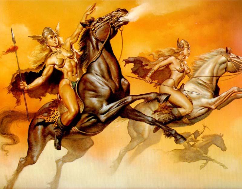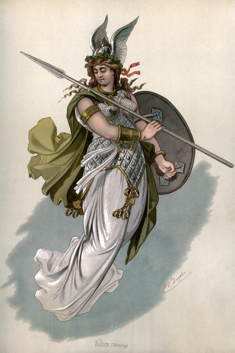 En la mitología germánica las Walkirias, Walkyrias o Valquirias son doce divinidades femeninas semejantes a las amazonas griegas, hermosas y guerreras. Como diosas de la guerra escogían a los combatientes que morirían en las batallas. Se las representaba como vírgenes audaces que cabalgaban por el aire, presenciando los combates que ellas arbitrarían. Conviene aclarar que estaban subordinadas al dios supremo Odín o Wotan. Sus decisiones en última instancia correspondían a la voluntad de la divinidad máxima del panteón germánico.