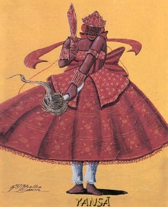 Su parafernalia es totalmente blanca, aunque requiere de rojo en determinados detalles. Por influencia de Ifá, se le ha agregado verde, lo cual es congruente con tradiciones ancestrales.